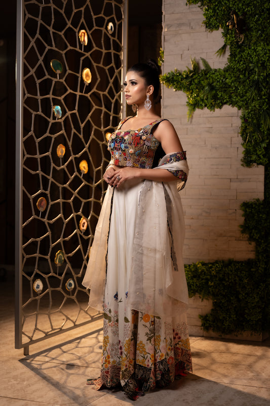 Divine Pearl Bustier Dress with 3D Embroidered Jacket