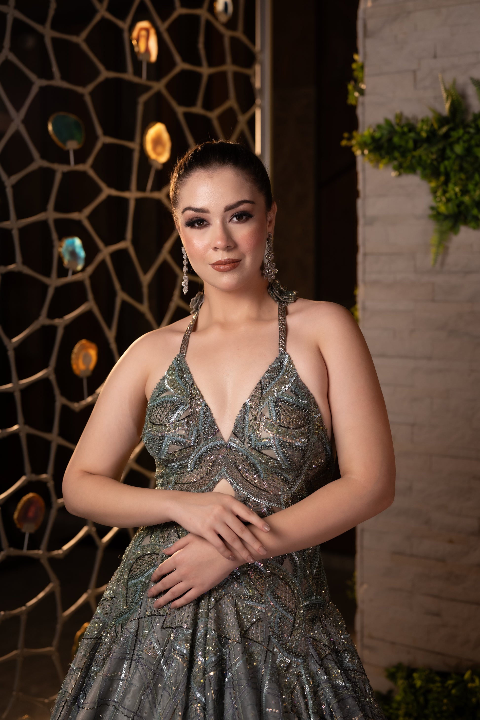 Perfect for formal events and weddings, this silver organza gown is a symbol of timeless beauty. Its graceful silhouette and opulent embellishments make it a statement piece, ensuring you make a memorable entrance and leave a lasting impression.